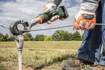 The ESG45LX is ideal for overhead one-handed operation and cuts up to 1/2-inch rebar (Schedule 60) and EHS guy strand and 5/8-inch ground rod and standard guy strand. It has a compact, lightweight design, weighing less than 8 pounds with battery, and it is 33% lighter than an earlier model, thanks to a redesigned flip-top-style latch that reduces overall weight.