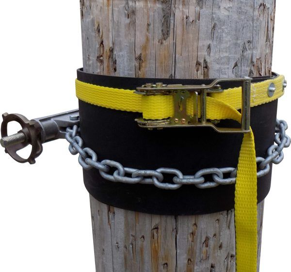 Hastings’ Pole Protector guards a variety of poles from tools with a chain binder, including those made from fiberglass, concrete and steel. A cushioned wrap attached to a rachet strap prevents the chain from digging into the pole and causing damage.