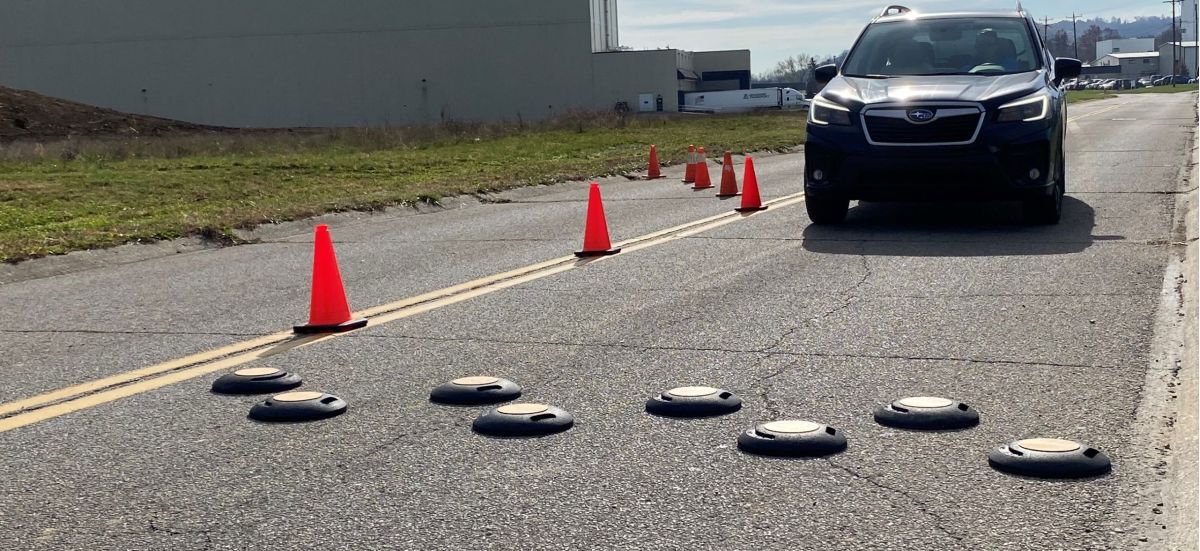 Speed Spots is a portable speed bump system developed to quickly and easily reduce traffic speeds in utility work zones, construction zones and more. The lightweight, easy-to-handle Speed Spots, made from recycled rubber, are intended to be placed in a staggered pattern across lanes to reduce traffic speeds. They are sold in packs of eight, and the company recommends six to eight Speed Spots per lane. Each Speed Spot weighs 6 pounds. Their built-in handle makes it easy for anyone to carry four at a time. www.speedspots.net