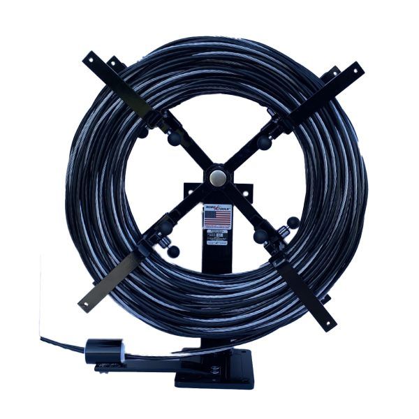 Triplex RoboReels have four adjustable arms that allow for an easy and secure means of loading, unwinding and re-winding various coil diameters. The Triplex RoboReel’s four adjustable arms can accommodate coils with outside diameters from 26 to 32 inches; inside diameters from 14 to 20 inches; and widths up to 10 1/4 inches. When the coil is installed on the stand, the adjustable arms quickly and securely clamp the coil in place. Wire or cable is then easily pulled or re-wound through the smooth center guide that can be mounted in either direction.