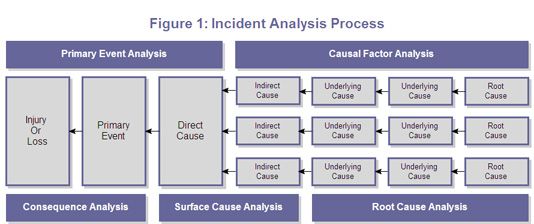 In the April 2009 edition of “Incident Prevention,” in an article titled, “Incident Analysis: Beyond the Surface,” I suggested a two-phase incident analysis process. The first phase is a Primary Event Analysis. This phase determines what happened (i.e., the primary event and its consequences) and how it happened (i.e., the direct or immediate cause). The second phase is a Causal Factor Analysis, which determines why the incident happened. It starts with listing the indirect or proximate causes, and then performing a Root Cause Analysis to determine the underlying or approximate causes, and the root or ultimate causes (see Figure 1: Incident Analysis Process).