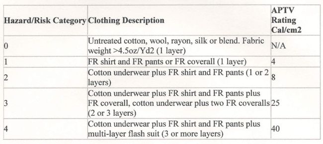 •Each FR garment is assigned an ATPV rating by the manufacturer. The ATPV value represents the amount of incident energy that would cause the onset of second-degree burns. It also signifies the amount of protection the clothing affords when an electrical arc comes in contact with the fabric.